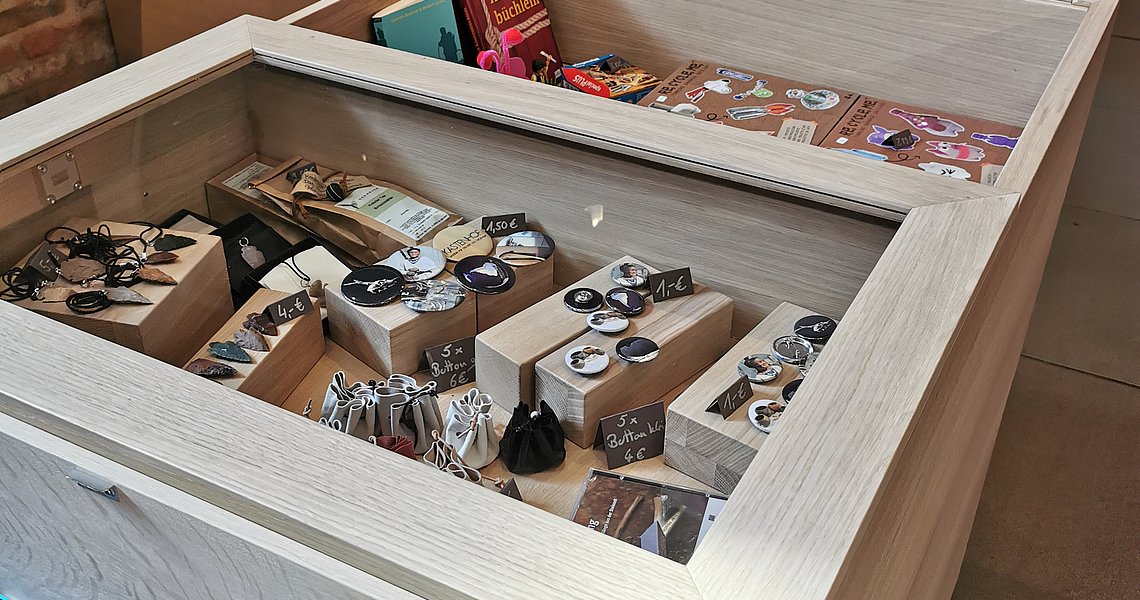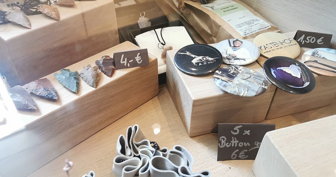 Im Museumsshop des Kastenhofs werden Sie zwischen Büchern zum Stöbern und Forschen, Geschenkideen und selbstgemachten Schmuckstücken ganz sicher fündig.