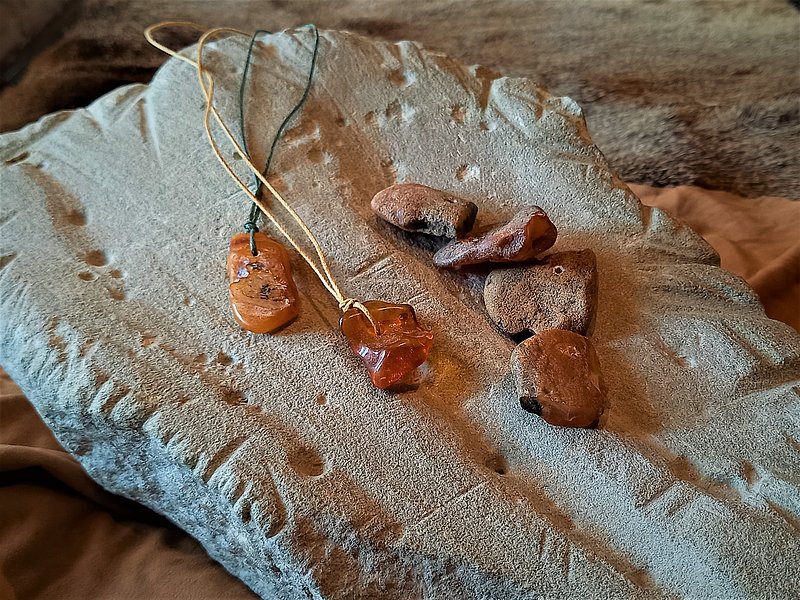 Nach einer Pause wird es edel. Die Kinder erfahren, was es mit dem „brennenden Stein“ auf sich hat, schleifen einen Rohbernstein mit steinzeitlichen und modernen Methoden und fertigen sich darauf eine Kette an. Jedes Kind darf seinen Bernsteinanhänger mit nach Hause nehmen.